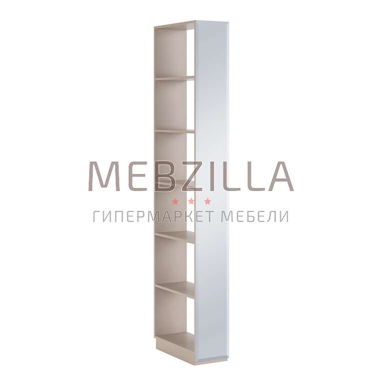 Стеллаж Беатрис с зеркальной вставкой может использоваться как отдельно стоящий модуль или в комплекте со шкафами из данной коллекции. Идеален для предметов декора и книг.