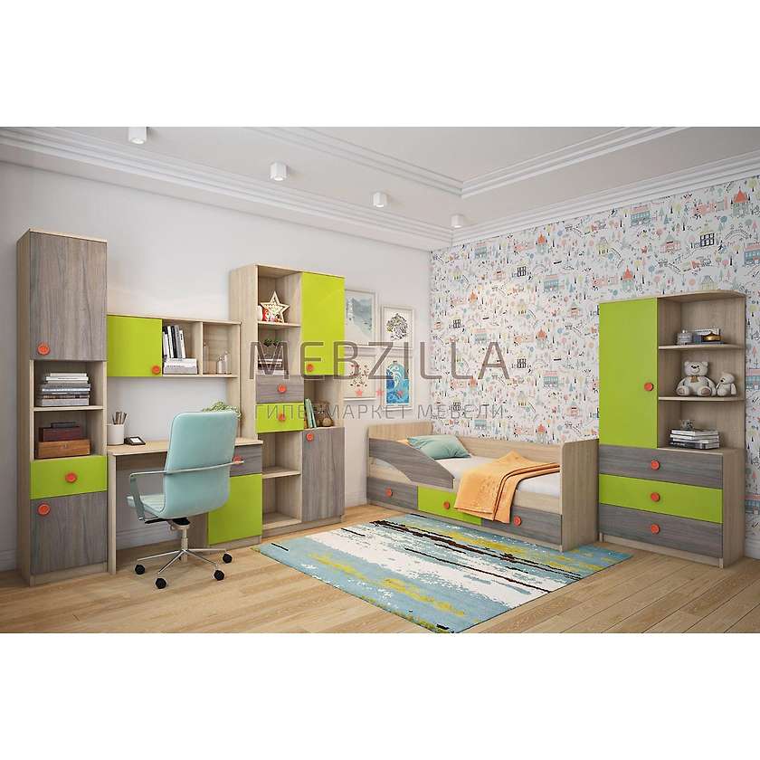 Цвет: Корпус ЛДСП Дуб Сонома/Фасад ЛДСП Вяз Либерти Темный/Лайм