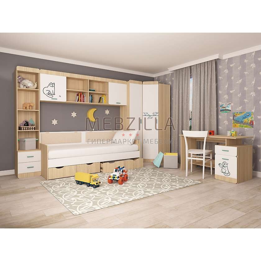 Детская Киса - это комплект качественной, современной детской мебели для ребенка. Комплект оснащен большим количеством модулей для максимального удобства и комфорта. Используется надежная немецкая фурнитура. Яркая и стильная детская мебель будет радовать родителей и ребенка долгие годы, поможет компактно разместить все вещи, предметы и игрушки.