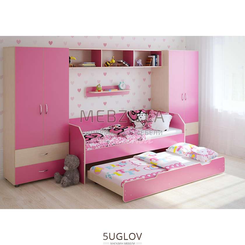 Многофункциональная детская стенка для двоих детей Легенда №15 обеспечит вашим чадам уютное и комфортное личное пространство, состоит из нескольких элементов. Детская кровать Легенда 13 с выкатным ящиком, который спроектирован так, что может использоваться как ящик для хранения постельного, так и как небольшая по высоте и очень удобная для второго малыша кроватка. Три вместительные полки антресоли Л-02 станут удобным местом для хранения любимых игрушек и книг детей. Два удобный двухдверных шкафа Л-01 прекрасно дополнит интерьер детской комнаты. Шкафы имеют большое пространство для хранения вещей, разделённое на две зоны, в одной из которых расположена специальная штанга для плечиков, в другой - 4 полки, и одна полка для головных уборов - на всю ширину шкафа. Внизу шкафа расположены два больших выдвижных ящика для белья. Полка Л-01 для детских поделок имеет закруглённые края. На выбор представлена разнообразная цветовая палитра композиции на любой вкус родителей и пол детей.
