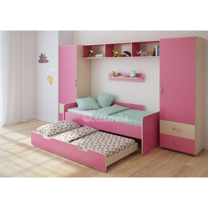 Многофункциональная детская стенка для двоих детей Легенда №16 обеспечит вашим чадам уютное и комфортное личное пространство, состоит из нескольких элементов. Детская кровать Легенда 14 с выкатным ящиком, который спроектирован так, что может использоваться как ящик для хранения постельного, так и как небольшая по высоте и очень удобная для второго малыша кроватка. Три вместительные полки антресоли Л-02 станут удобным местом для хранения любимых игрушек и книг ребёнка. Два пенала Л-01 являются небольшими платяными шкафами с перекладиной для вешалок. Отделение для одежды разделено полкой для вещей или головных уборов. В нижней части размещены два вместительных выдвижных ящика. На выбор представлена разнообразная цветовая палитра композиции на любой вкус родителей и пол детей.