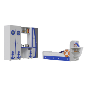 В комплектацию 01 набора для детской комнаты Парус входят: кровать одноярусная Парус Яхта-1, шкаф Парус П-1, стол письменный Парус П-2, полка Парус П-3 и пенал Парус П-4. Удобная и оригинальная одноярусная детская кровать Парус Яхта-1 выполнена в морском стиле с двумя большими вместительными выдвижными ящиками, которые располагаются под ней и используются для хранения игрушек, белья или других вещей. Кровать похожа на небольшую яхту с декоративным спасательным кругом и с полочками в её правой части. Вместительный шкаф парус П-1 будет дополнительным местом для хранения детских вещей. Внутри шкафа в левой части установлена штанга для навески плечиков, в верхней части предусмотрена полка для головных уборов, а с правой стороны - пять закрывающихся ниш для вещей. Дверцы шкафа украшены декоративными элементами на морскую тематику. Стильности изделию придают оригинальные ручки. Современный письменный стол Парус П-2 для детской комнаты с оригинальным морским декором состоит из рабочей поверхности - столешницы, полки, трёх вместительных выдвижных ящиков и открытой ниши. На столе легко поместятся монитор компьютера или ноутбук, а также материалы для учебы, а на полке, в нише и выдвижных ящиках - документы, книги, учебники, тетради и много канцелярских принадлежностей. Полка Парус П-3 для детской комнаты для удобства выполнена в виде четырёх ниш разного размера. Вместительный пенал Парус П-4 детской модульной комнаты состоит из пяти закрытых ниш для размещения разных вещей ребёнка.