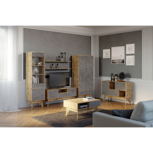 Комфортная и вместительная гостиная Хелен композиция 1 имеет основные необходимые элементы. Шкаф 2205.М1 содержит пять закрытых полок. Тумба 2206.М1 включает один выдвижной ящик и одну открытую секцию. Тумба 2209.М1 имеет три выдвижных ящика и одну открытую секцию. Тумба 2212.М1 содержит три выдвижные ящика и три открытые секции. Также в комплект входит навесная открытая полка и платяной шкаф. Механизм выдвижных ящиков - шариковые направляющие полного выдвижения, ручки алюминиевые. Гостиная выполнена из высококачественных материалов, поэтому все элементы компоновки прослужат длительное время.