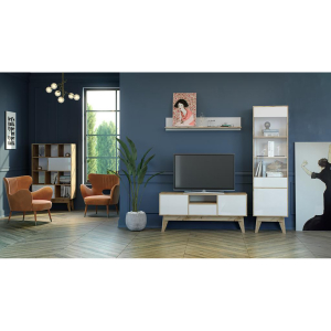 Комфортная и вместительная гостиная Хелен композиция 1 имеет основные необходимые элементы. Комод 2204.М1 состоит из двух закрытых ящиков и восьми открытых полок. Шкаф 2205.М1 содержит пять закрытых полок. Тумба 2209.М1 имеет три выдвижных ящика и одну открытую секцию. Также в комплект входит навесная открытая полка. Гостиная выполнена из высококачественных материалов, поэтому все элементы компоновки прослужат длительное время.