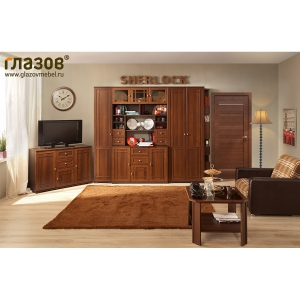 Оригинальная и функциональная Гостиная BERLIN состоит из основных элементов: шкаф навесной состоит из трёх секций за матовыми стеклянными дверцами и двух открытых полок, две тумбы многоцелевого назначения состоит из двух секций с полками за глухими дверцами по бокам, одного отделения за глухой дверцей по середине снизу, и двух выдвижных ящиков, шкаф для одежды состоит из одной широкой полки сверху и штанги для вешалок, шкаф для посуды состоит из четырёх полок, стол журнальный со стеклянной поднимающейся столешницей и полкой под ней, органайзер состоит из двух тумбочек с двумя выдвижными ящиками и двух открытых полок и столешницы. Необычная Гостиная Sherlock выполненная в брутальном английском стиле, создаст строгое и правильное настроение времён конца 19 века.