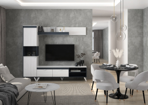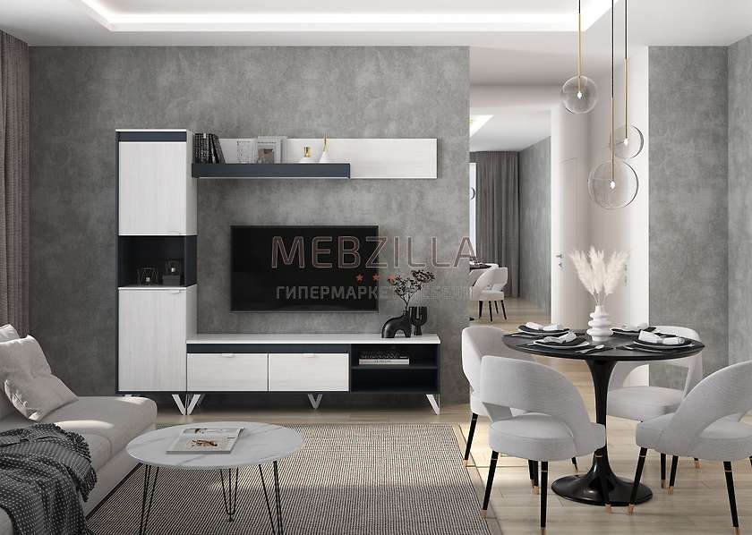 Модульная коллекция Винтер - современное и практичное решение для организации хранения в гостиной. Подойдет также для малогабаритных гостиных, в которых каждый сантиметр площади имеет значение. Коллекция представлена всего четырьмя модулями, комбинируя которые между собой Вы сможете обустроить ТВ-зону и расположить все Ваши вещи: от книг и предметов декора до одежды и домашних мелочей. Мебель выполнена в контрастном декоре 'винтенберг/рейн морион' с текстурой натурального дерева и украшена металлической фурнитурой, тонкими ручками и ножками белого цвета.