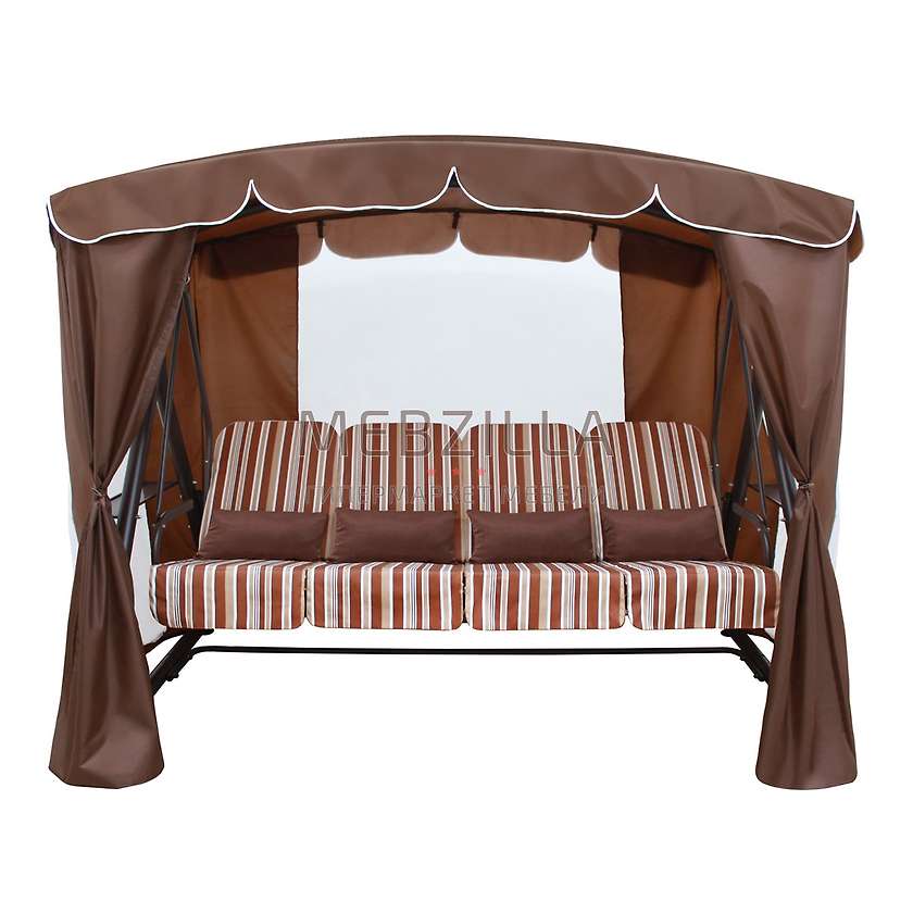 Расцветка и материал ткани подушек: коричневый с полосками, смесовая ткань с влагоотталкивающей пропиткой