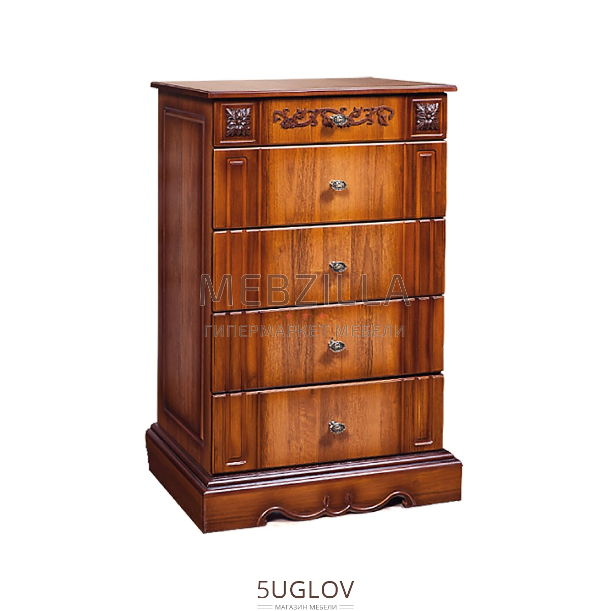 Классический комод 5Я Амелия КМК 0435.14 из состава модульной гостиной состоит из пяти выдвижных ящиков, в которых можно разместить огромное количество личных вещей. На столешнице комода можно разместить фотографии, цветы или элементы декора.