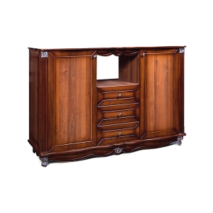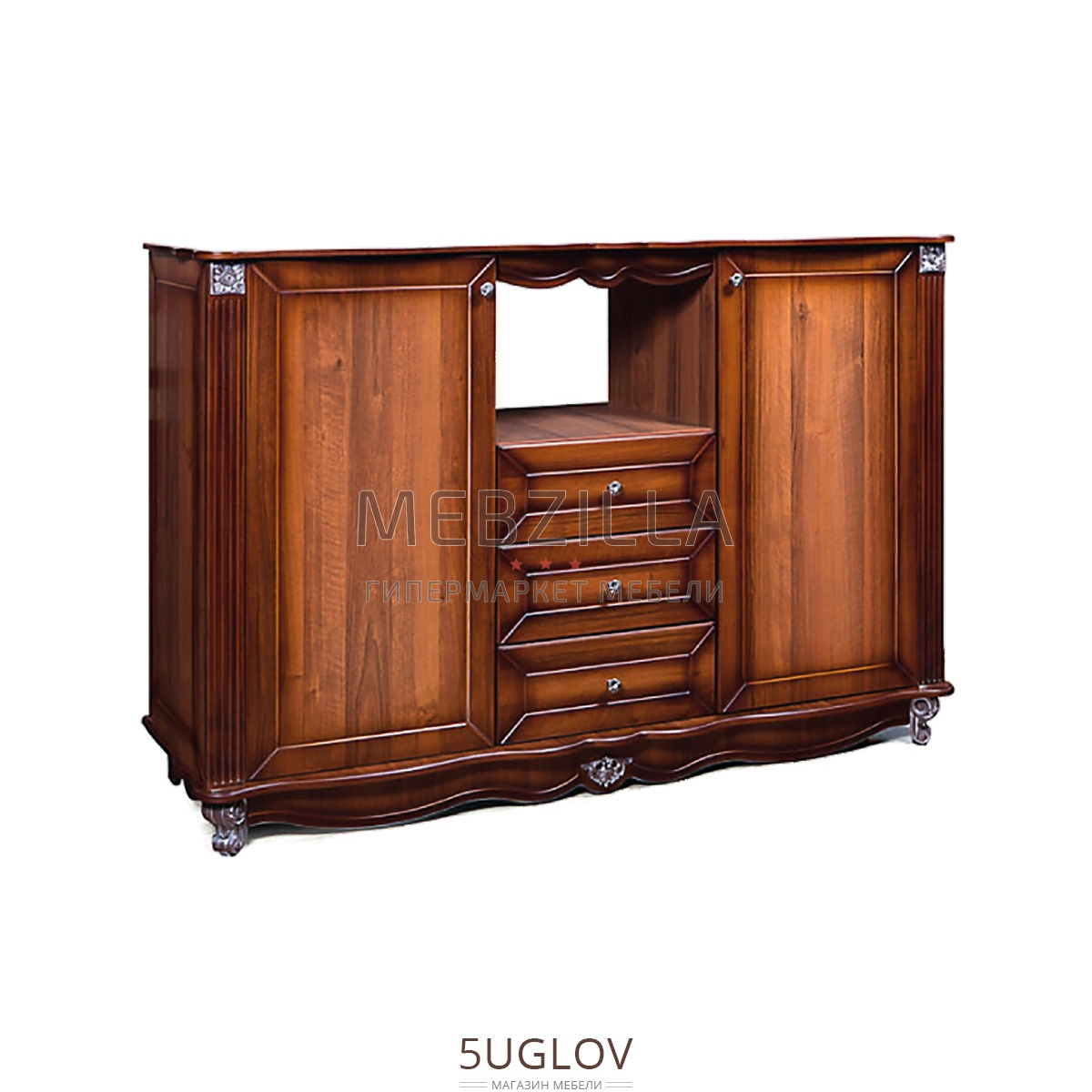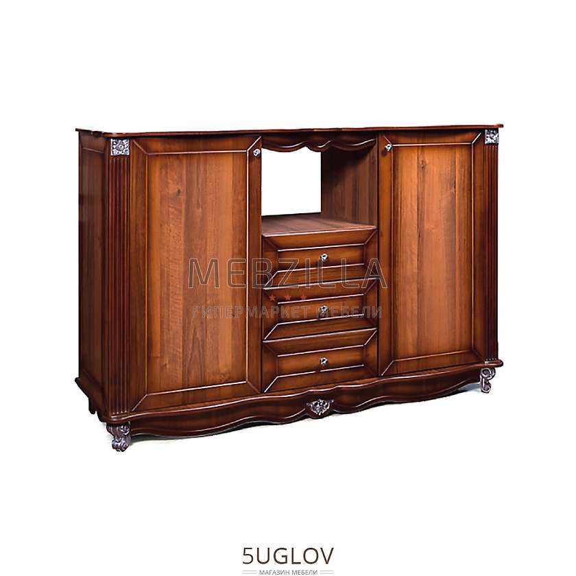 Стильный, классический комод Баккара КМК 0441.9, оформленный в благородном стиле обязательно дополнит интерьер Вашей спальни или гостиной. Комод состоит из двух шкафчиков с полками ЛДСП, одной отрытой полки и трех выдвижных ящиков. На столешнице комода можно разместить фотографии, повседневно используемые вещи, элементы декора, цветы или поставить телевизор.