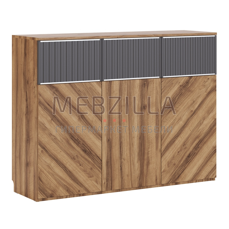 Вместительный комод Моника с 3-мя ящиками и 3-мя секциями за дверцами идеален для хранения белья, вещей в сложенном виде, книг и домашней утвари. Декор цвета графит визуально облегчает модуль, благодаря чему он не смотрится массивным.