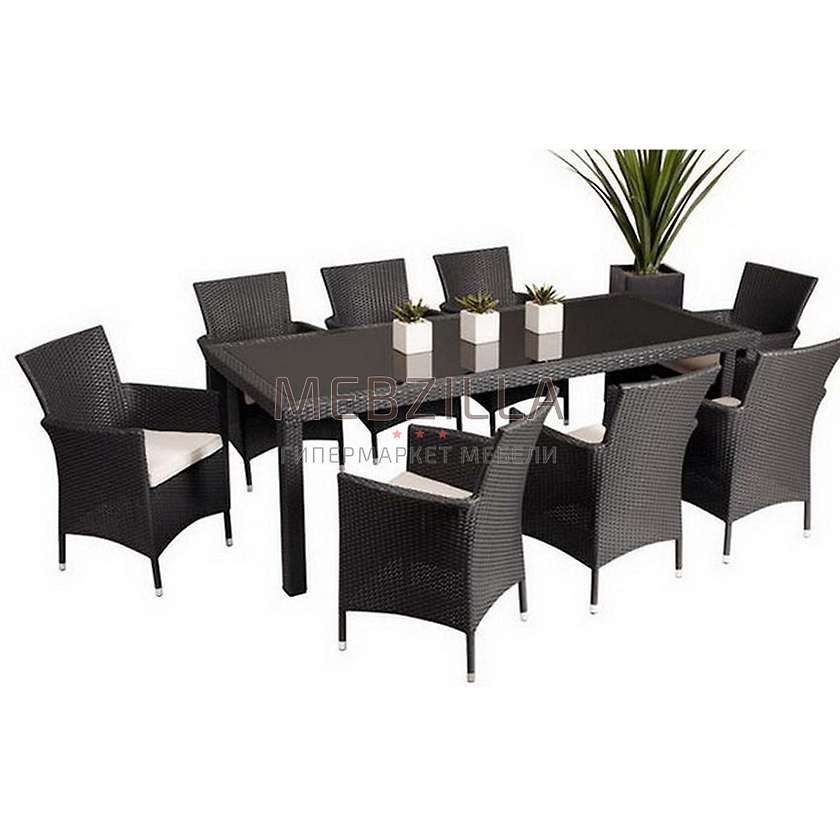 Комплект обеденный Египет - удобное и эргономичное место для отдыха либо приема пищи для вашего загородного дома. Плетение кресел выполнено из качественного искусственного ротанга. Комплект включает в себя стол и восемь кресел.
