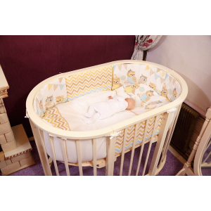 Сменный комплект постельного белья для овальной кровати Incanto 6081 Совушки создаст уют для Вашего малыша. Он включает в себя мягкие бортики, которые создадут ощущения безопасности и комфорта. Подушка и одеяло изготовлены из качественного холофайбера, а одеяло, наволочка и пододеяльник - из натурального хлопка бежевого цвета.