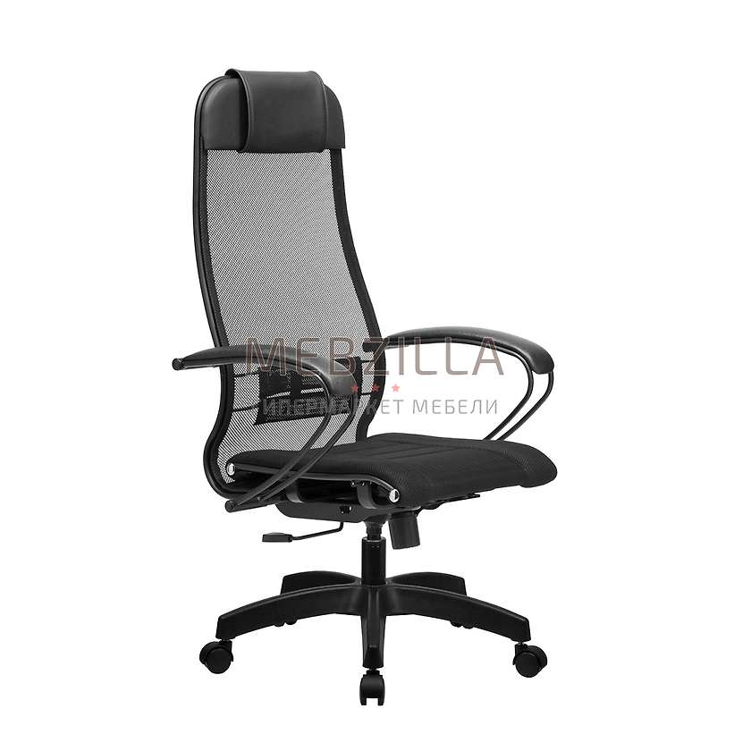Надежное эргономичное офисное кресло Метта комплект 0 с мягким объёмным сиденьем и высокой спинкой шириной 475 мм с мягким подголовником. Подлокотники стальные с обивкой из экокожи. Обивка сиденья выполнена из износостойкой обивочной сетчатой ткани с прошивкой. Спинка сделана из натяжной мягкой сетки без прошивки. Эргономичное кресло серии Метта - прекрасный вариант для руководителя или менеджера.