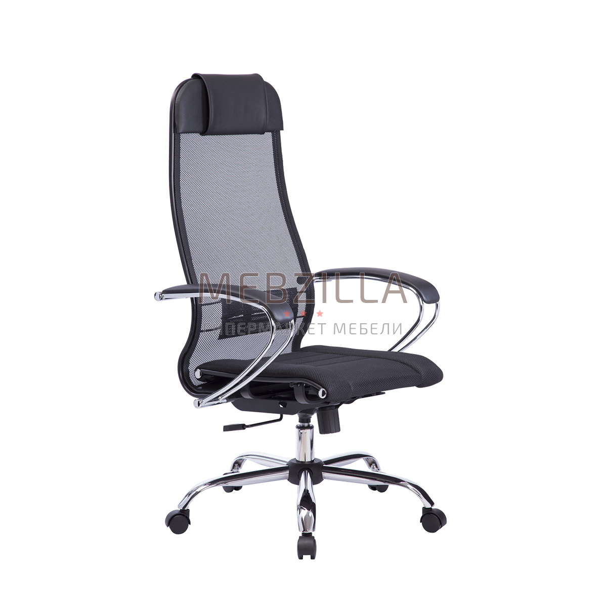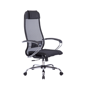 Надежное эргономичное офисное кресло Метта комплект 1 с мягким объёмным сиденьем и высокой спинкой шириной 475 мм с мягким подголовником. Подлокотники стальные с обивкой из экокожи. Обивка сиденья выполнена из износостойкой обивочной сетчатой ткани с прошивкой. Спинка сделана из мягкой натяжной сетки без прошивки. Эргономичное кресло серии Метта - прекрасный вариант для руководителя или менеджера.