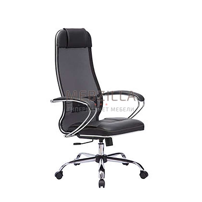 Надежное эргономичное офисное кресло Метта комплект 5 с мягким объёмным сиденьем и высокой спинкой шириной 475 мм с хромированным молдингом и мягким подголовником. Подлокотники стальные с обивкой из износостойкого материала NewLeather. Обивка сиденья выполнена из износостойкого перфорированного материала NewLeather с прошивкой. Спинка сделана из натяжной сетки без прошивки (сетка Х2). Эргономичное кресло серии Метта - прекрасный вариант для руководителя или менеджера.