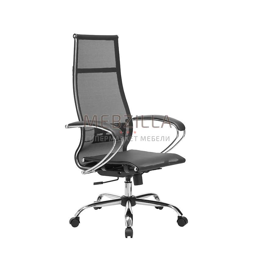Надежное эргономичное офисное кресло Метта комплект 7 с сиденьем на стальном каркасе и высокой спинкой шириной 475 мм. Подлокотники стальные с обивкой из экокожи. Обивка сиденья и спинки выполнена из мелкой сетчатой ткани без прошивки. Эргономичное кресло серии Метта - прекрасный вариант для руководителя или менеджера.