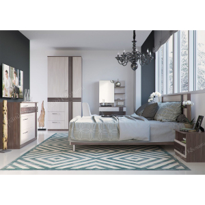 Стильный и современный комплект мебели для спальни «Презент» состоит из кровати, прикроватной тумбы, трюмо, зеркала, вместительных комодов и шкафов. Сочетание теплых цветов и дизайнерского решения в стиле подарочного оформления делают спальню «Презент» приятным подарком!