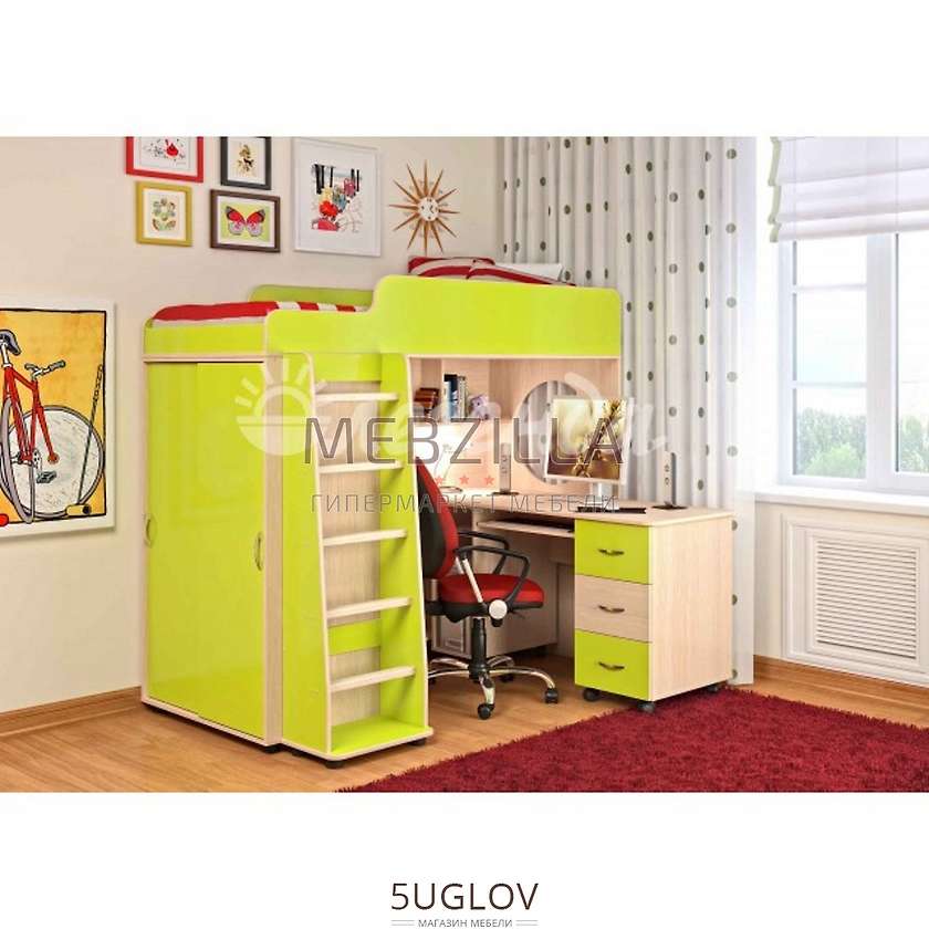 Удобная пятиступенчатая лестница очень устойчива и безопасна. Боковые бортики имеют противоударный кант. Множество полок и удобный шкаф навсегда решит проблему места для игрушек.