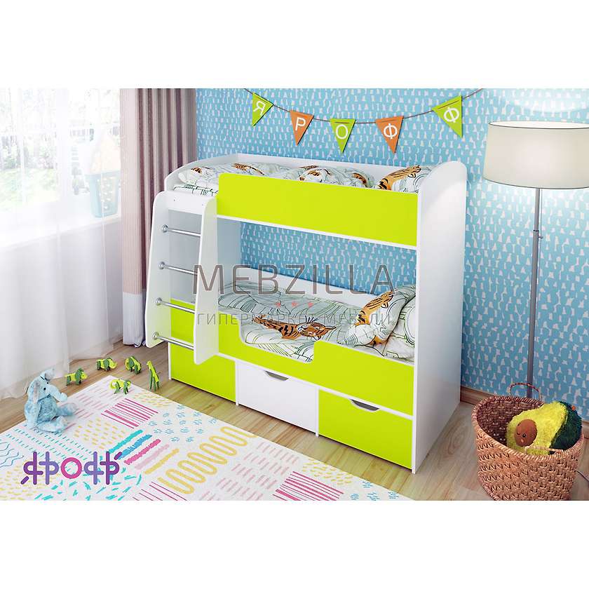 Яркая и стильная компактная двухъярусная кровать Малыш Двойняшка станет отличным выбором для обустройства комнаты вашего ребенка. В комплект входят три вместительных выкатных ящика и удобная лесенка. Разнообразие цветовой палитры мебели Ярофф, гармонично впишет ее в любой интерьер, а качественные и современные материалы, используемые при создании линейки, станут залогом надежности и долговечности предметов.