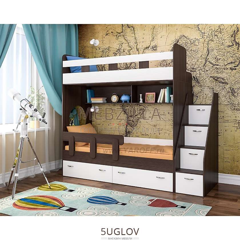 Яркая и стильная двухъярусная кровать Юниор -1 станет отличным выбором для обустройства комнаты вашего ребенка. Разнообразие цветовой палитры мебели Ярофф, гармонично впишет ее в любой интерьер, а качественные и современные материалы, используемые при создании линейки, станут залогом надежности и долговечности предметов. Дополнительно кровать может быть укомплектована бортиком, выполненном в цвете дуб молочный или бежевый.