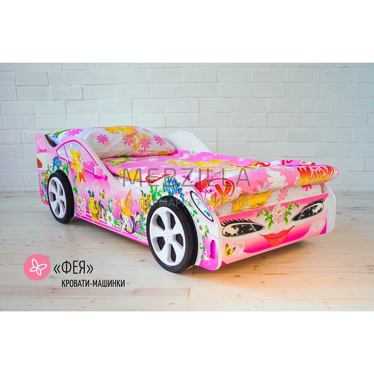 Удобная и оригинальная одноярусная детская кровать Фея выполнена в виде спорткара и станет незаменимым элементом детской комнаты. Модель соответствует всем отечественным и европейским стандартам качества в области экологии. Кровать не имеет острых углов, все края безопасны благодаря покрытию кромкой ПВХ. Эксклюзивный макет рисунка для кровати специально подготовлен художником на заказ.