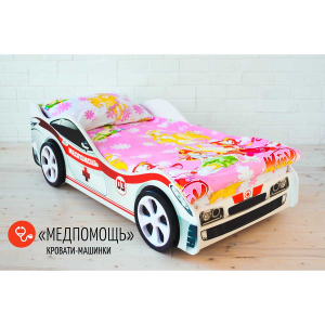 Удобная и оригинальная одноярусная детская кровать-машина выполнена в виде машины скорой помощи и станет незаменимым элементом детской комнаты. Модель соответствует всем отечественным и европейским стандартам качества в области экологии. Кровать не имеет острых углов, все края безопасны благодаря покрытию кромкой ПВХ. Эксклюзивный макет рисунка для кровати специально подготовлен художником на заказ.
