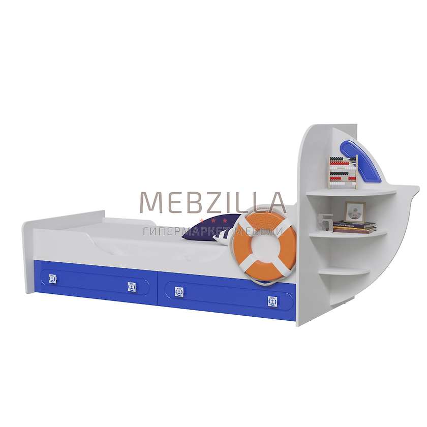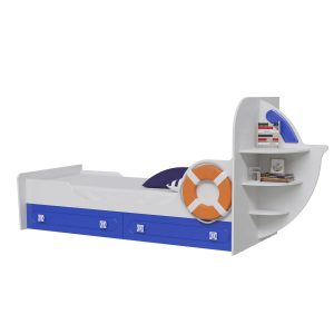 Удобная и оригинальная одноярусная детская кровать Парус Яхта-1 с ящиками является незаменимым элементом детской модульной системы Парус. В комплектацию входит выполненная в морском стиле детская кровать с двумя большими вместительными выдвижными ящиками, которые располагаются под ней и используются для хранения игрушек, белья или других вещей. Кровать похожа на небольшую яхту с декоративным спасательным кругом и с полочками в её правой части. В качестве дополнительной опции можно приобрести светодиодную подсветку, которая крепится над ящиками с внутренней стороны корпуса.