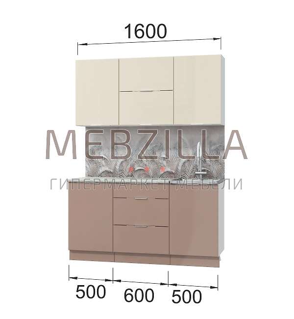 - фасад: МДФ + пленка ПВХ: шкафы настенные - 'Ваниль глянец', шкаф-столы кухонные - 'Кофе с молоком глянец'