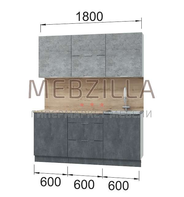 - фасад: МДФ + пленка ПВХ: шкафы настенные - 'Бетон светлый', шкаф-столы кухонные - 'Бетон темный'