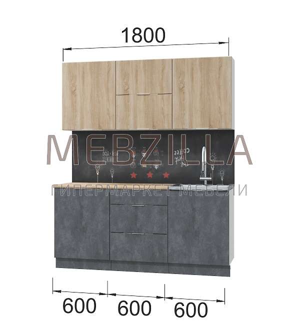 - фасад: МДФ + пленка ПВХ: шкафы настенные - 'Дуб сонома', шкаф-столы кухонные - 'Бетон темный'