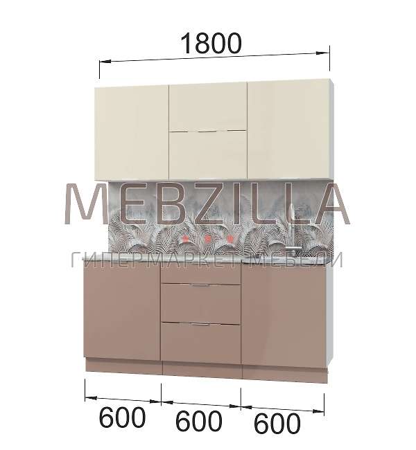 - фасад: МДФ + пленка ПВХ: шкафы настенные - 'Ваниль глянец', шкаф-столы кухонные - 'Кофе с молоком глянец'