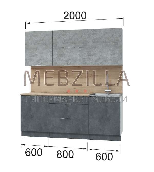 - фасад: МДФ + пленка ПВХ: шкафы настенные - 'Бетон светлый', шкаф-столы кухонные - 'Бетон темный'