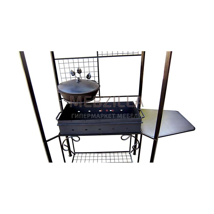Мангал дачный МД-5 с крышей станет изящным и долговечным атрибутом для Вашего отдыха на загородном участке. Каркас мангала защищен порошковой покраской, жаровня имеет транспортировочное покрытие, а столик сделан из ламинированной фанеры толщиной 10 мм. Все это гарантирует надежное использование данной модели на протяжении всего эксплуатационного срока. Жаровня выполнена из 2-х мм стали, для прочности обварена сантиметровым квадратом. Для обеспечения максимальной мобильности мангала предусмотрели возможность быстрой и легкой сборки и демонтажа на отдельные составляющие. Данная модель обладает не только достаточными функциональными возможностями, что не оставит Вас равнодушным и обязательно уверит в удачной покупке, но и обладает эстетичным внешним видом благодаря арочному козырьку и декоративному орнаменту «Лепестки».