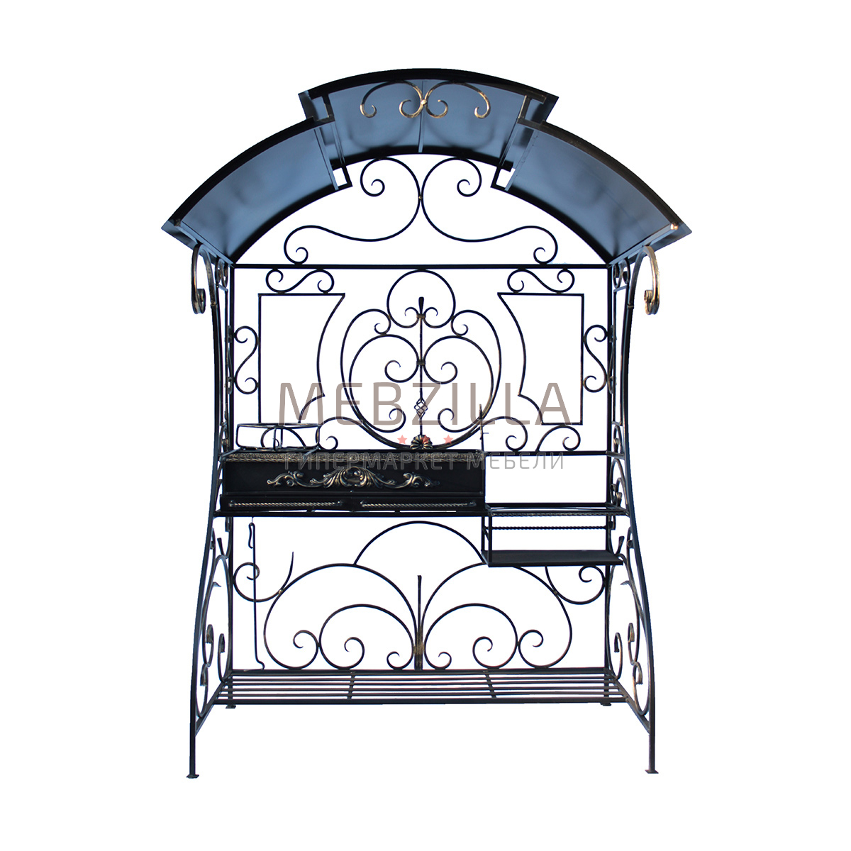 Мангал Удачный станет высококачественным, функциональным и декоративным элементом летней кухни, настоящим уголком отдыха на территории Вашего загородного дома. Устойчивость и надежность конструкции не вызывает сомнений, каждая деталь выполнена отчетливо, все узлы связаны жестко, придавая уверенности всему изделию. Корпус покрытый стойкой к атмосферным влияниям матовой эмалью обеспечит модель долгим эксплуатационным сроком, а декоративная позолоченная патина будет радовать своей привлекательностью при каждом следующем использовании. Печь комплектуется зольником и дымоходом.
