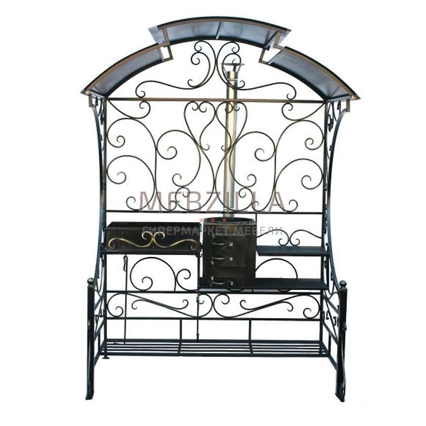 Мангал Витос станет высококачественным, функциональным и декоративным элементом летней кухни, настоящим уголком отдыха на территории Вашего загородного дома. Устойчивость и надежность конструкции не вызывает сомнений, каждая деталь выполнена отчетливо, все узлы связаны жестко, придавая уверенности всему изделию. Корпус покрытый стойкой к атмосферным влияниям матовой эмалью обеспечит модель долгим эксплуатационным сроком, а декоративная позолоченная патина будет радовать своей привлекательностью при каждом следующем использовании. Печь оснащена зольником и оцинкованным дымоходом.