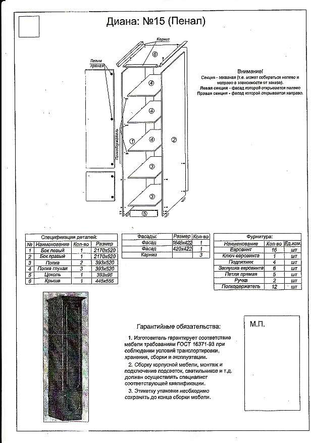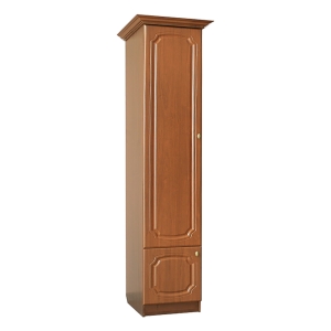 Узкий бельевой пенал №15 дополнит гостиную и несомненно увеличит ее функциональность - за глухими дверцами двух шкафчиков классической формы и цвета пенала скрываются пять мест для хранения одежды. Металлические ручки дверец прекрасно гармонируют с фасадом бельевого пенала №15 из состава модульной гостиной Диана МДФ. Универсальная конструкция пенала позволяет собирать его и на правую и на левую сторону открывания дверец шкафчиков.