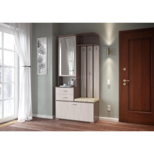 Модульная прихожая «Домино» позволит обустроить прихожую любого размера самыми необходимыми предметами мебели, создав в ней по-настоящему стильный и комфортный интерьер, а функциональность не оставит Вас равнодушными: крючки для одежды, два ящика, ниша с полками за зеркалом, мягкое сиденье, а также полочки под обувь. Это не может не удивлять!