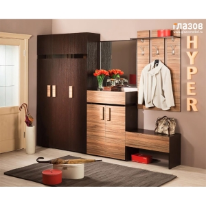 Стильная и функциональная прихожая Hyper имеет все основные необходимые элементы: открытая вешалка с полочкой для головных уборов, шкафы со штангой для вешалок и с полочками для белья, две тумбы, одна из которых выполняет функцию банкетки и зеркало. Простая и функциональная прихожая Hyper создана для активных и динамичных людей.
