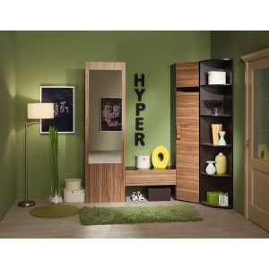 Стильная и функциональная угловая прихожая Hyper имеет все основные необходимые элементы: открытая вешалка с полочкой для головных уборов и встроенным зеркало экономит пространство, угловой шкаф со штангой для вешалок и с полочкой для головных уборов оснащён подсветкой, тумба для обуви, которая выполняет функцию банкетки и угловая полка. Простая и функциональная прихожая Hyper создана для активных и динамичных людей.