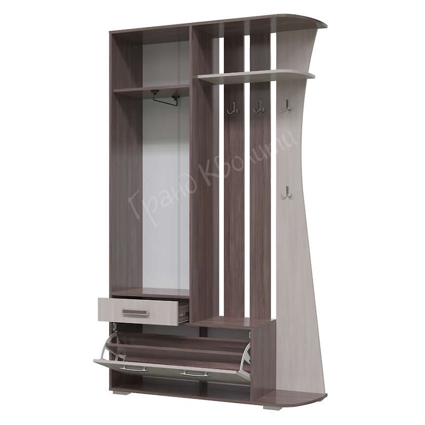 Компактная и стильная прихожая «Мокко» выполнена в трех современных сочетаниях цветов: «Бодега» тёмный/светлый, «Дуб Кельтик», «Орех Донской»/«Дуб Сонома». Не смотря на свои компактные размеры, прихожая «Мокко» обладает хорошей функциональностью: штанга и крючки для одежды, выдвижной ящик для мелочей, обувница и две полки.