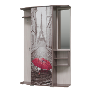 Компактность, современный цвет, практичные полки, зеркало и реалистичный рисунок, нанесенный по всей площади фасада шкафа, поможет создать свой собственный и неповторимый стиль при обустройстве интерьера прихожей.