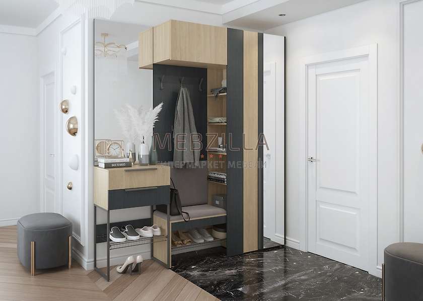 Мебель из коллекции Палермо - это модульный вариант обустройства Вашей прихожей в современном стиле. Выполнена из высококлассного ЛДСП и представлена сочетанием контрастных декоров с текстурой натурального дерева - палермо и рейн мореон. Разнообразие и безусловная функциональность модулей позволят Вам организовать грамотное хранение верхней одежды, уличной и домашней обуви и сезонных аксессуаров даже в малогабаритной прихожей. Комплект 1 состоит из комбинированной вешалки, двустворчатого шкафа, тумбы-обувницы с ящиками и навесного зеркала.