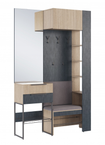 Мебель из коллекции Палермо - это модульный вариант обустройства Вашей прихожей в современном стиле. Выполнена из высококлассного ЛДСП и представлена сочетанием контрастных декоров с текстурой натурального дерева - палермо и рейн мореон. Разнообразие и безусловная функциональность модулей позволят Вам организовать грамотное хранение верхней одежды, уличной и домашней обуви и сезонных аксессуаров даже в малогабаритной прихожей. Комплект 5 состоит из комбинированной вешалки, тумбы-обувницы с ящиками и навесного зеркала.
