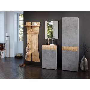 Комфортная и вместительная прихожая Римини композиция №R-30 имеет основные необходимые элементы. Вешалка настенная содержит одну открытую полку, одну выдвижную штангу и три крючка. Комод включает в себя закрытую нишу и один выдвижной ящик. Шкаф включает три закрытые полки и одну выдвижную штангу. Установлен механизм открывания дверей push to open. Также в комплект входит зеркало. Гостиная выполнена из высококачественных материалов, поэтому все элементы компоновки прослужат длительное время.