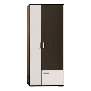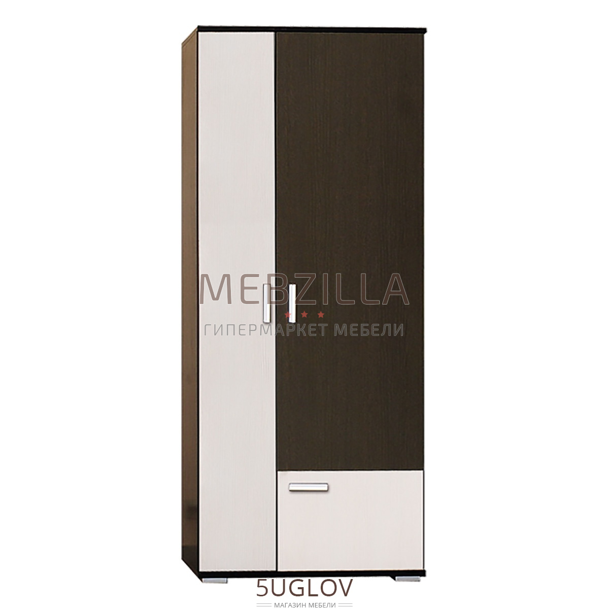 Шкаф 2х-дверный модульной системы Статус позволит удобно разместить вещи - с одной стороны размещены 4 вертикальные полки, с другой - место для хранения одежды на вешалках-плечиках на выдвигающейся перекладине, над которым находится еще одна полка. В нижней части шкафа размещен шкафчик для хранения. Универсальная конструкция шкафа позволяет собирать его в как в правом, так и в левом исполнении. Крышка и дно шкафа изготовлены из ЛДСП толщиной 22 мм, а ручки шкафчиков - из металла.