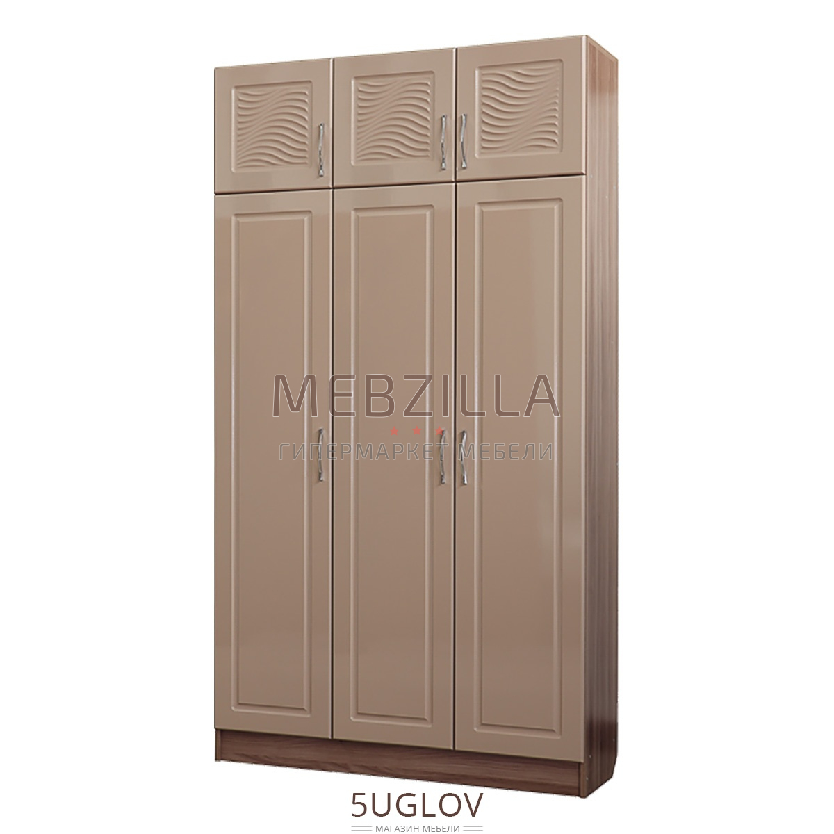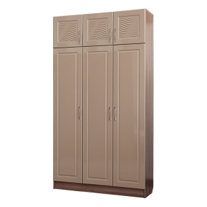 Шкаф 3х дверный из серии модульной прихожей Вега - это комбинированный шкаф, совмещающий в себе функции платяного и бельевого шкафов. В верхней части шкафа 3х дверного Вега размещены два шкафчика - один двустворчатый, второй одностворчатый. За дверцей первого большого одностворчатого вертикального шкафчика скрываются три полки для одежды, а за дверцами второго большого двустворчатого вертикального шкафчика - выдвижная штанга для хранения одежды на вешалках-плечиках. Дверцы шкафчиков выполнены с применением 3D фрезерования.