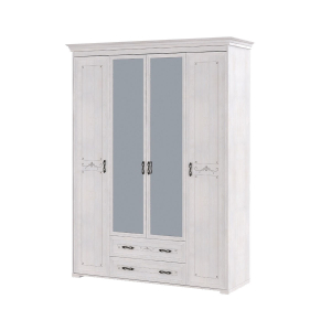 Шкаф четырехдверный с ящиками Афродита станет незаменимым атрибутом вашей спальной комнаты. Шкаф выполнен в стиле Прованс - фаворита среди интерьеров у мечтательных и романтичных натур, этот стиль отлично подойдет как для квартиры, так и для загородного дома. Он создает очень нежный и даже слегка «воздушный» вид вашей комнаты, где в свойственной французам элегантной манере объединены красота и комфорт. Шкаф включает в себя одиннадцать закрытых полок, два выдвижных ящика и штангу для хранения вещей на вешалках. Шкаф четырехдверный с ящиками Афродита идеально дополнит даже самый строгий интерьер.