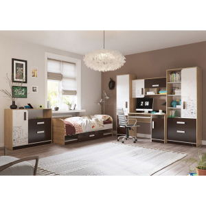 Детская состоит из большого количества модулей, которые продаются отдельно. Соответственно, их можно комбинировать по желанию и по мере взросления ребенка. Это позволит детской «расти» вместе со своим юным владельцем.