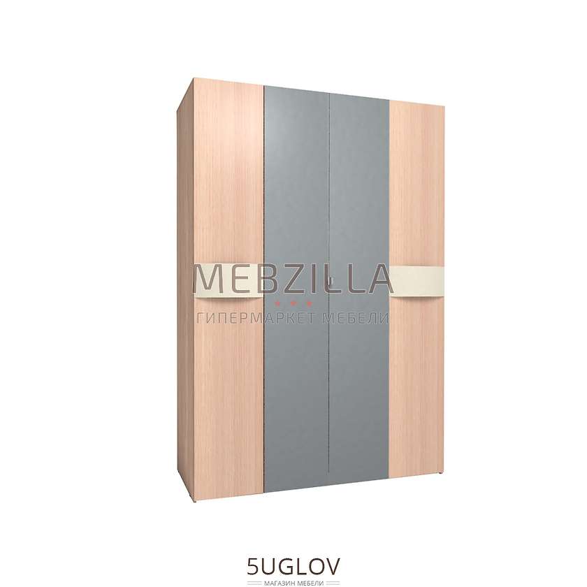 Вместительный шкаф для одежды и белья АМЕЛИ состоит: по бокам из двух одинаковых отделений по четыре полки в каждом и средней части, где сверху располагается штанга для вешалок, а по середине широкая полка и под ней вторая штанга. Снаружи по середине на двух дверцах установлены зеркала.