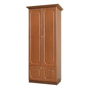 Платяной шкаф №13 модульной гостиной Диана МДФ с большим объемом полезного места для хранения имеет за закрывающимися глухими дверцами верхнюю полку, вместительное отделение с перекладиной для хранения одежды на вешалках-плечиках и нижний шкафчики. Металлические ручки дверец и качественная фурнитура долго будут радовать владельцев своей безотказной работой.